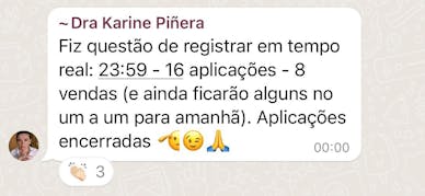 Hoje a Dra. Karina ajuda desde profissionais recém-formados até donos de clínicas que estão faturando centenas de milhares de reais por mês, a terem um crescimento constante e estabilidade financeira, sem que percam a qualidade de vida.