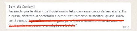 Transforme sua secretária no seu braço direito nas vendas. Esse curso ensina sua equipe a conduzir atendimentos, lidar com objeções e fechar agendamentos de forma estratégica, mantendo o padrão premium da sua marca. Quando a sua secretária aprende a vender com propósito, você conquista mais tempo, mais lucro e uma rotina muito mais leve.